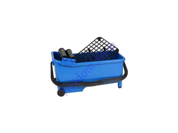 Kompakt fugázó készlet vödörrel, kerekekkel, rácsos betéttel és hengerekkel, professzionális csempézéshez és burkolási munkákhoz.